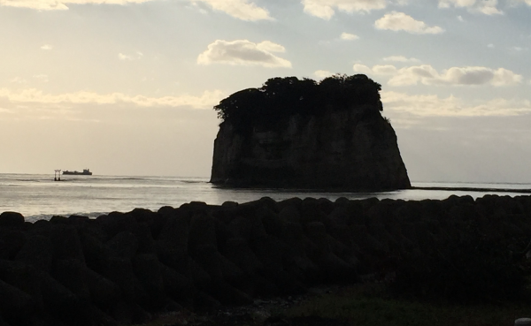 朝日の中の見附島